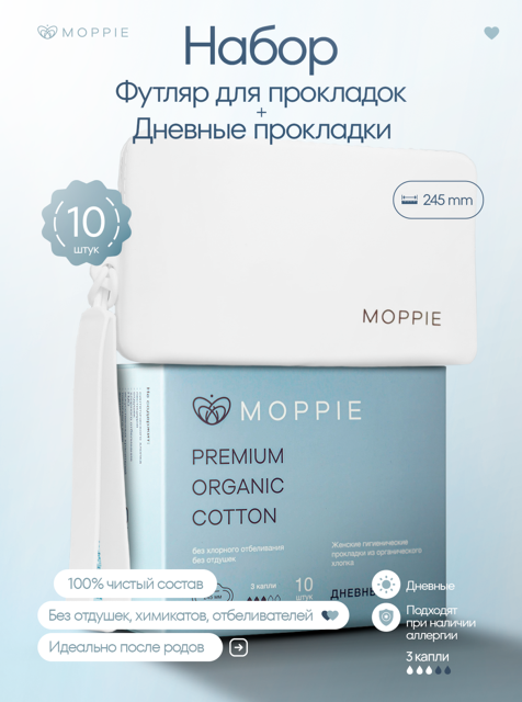 Гигиенические прокладки MOPPIE из органического хлопка обладают естественной впитывающей способностью.
